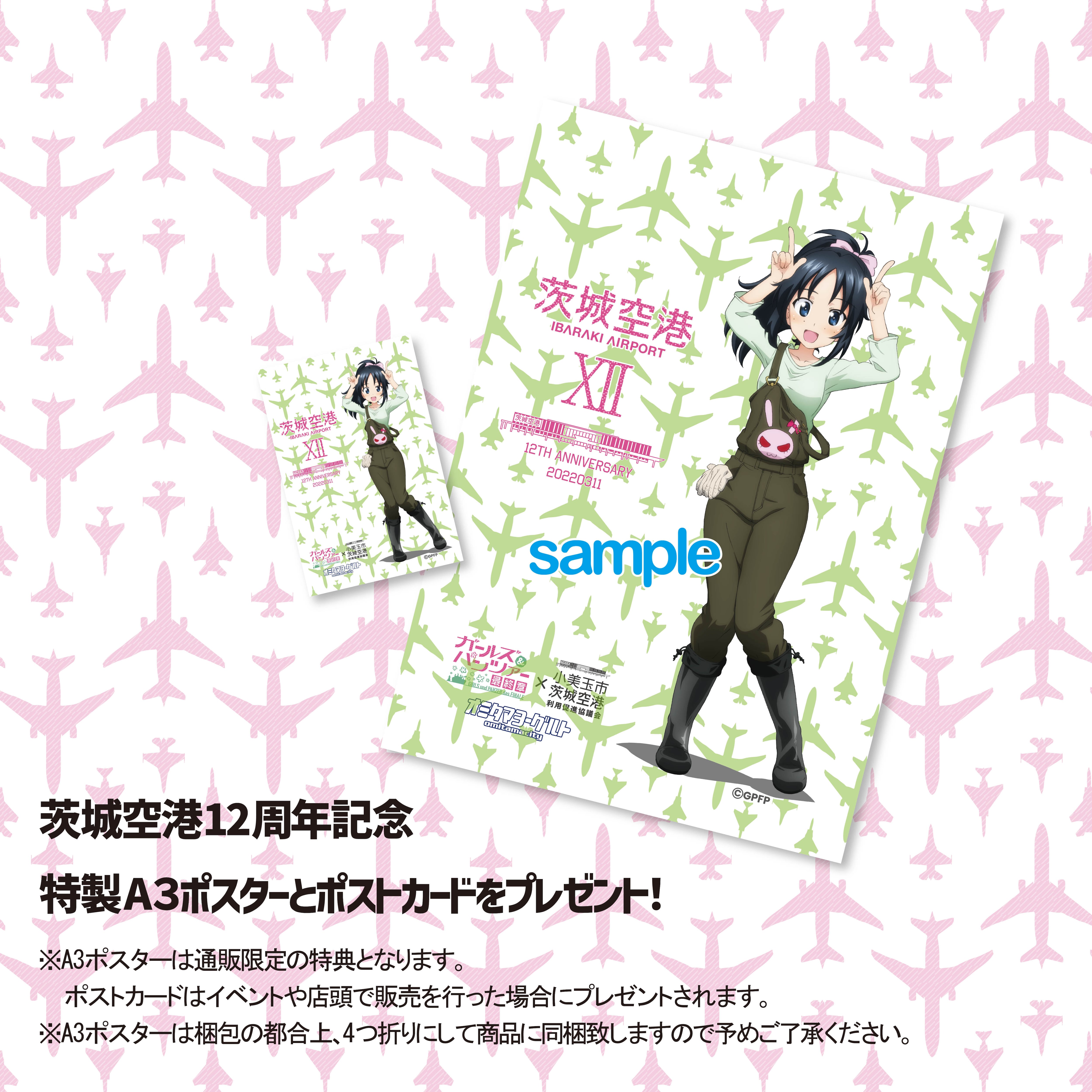 通信販売特典としまして茨城空港12周年記念ポストカードとA3ポスターを同梱いたします。ただし、サイズの都合上A3ポスターは折りたたんで商品に同梱いたしますので予めご了承ください。
